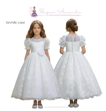 - Pechera lisa con aplicación de encaje en cuello y mangas