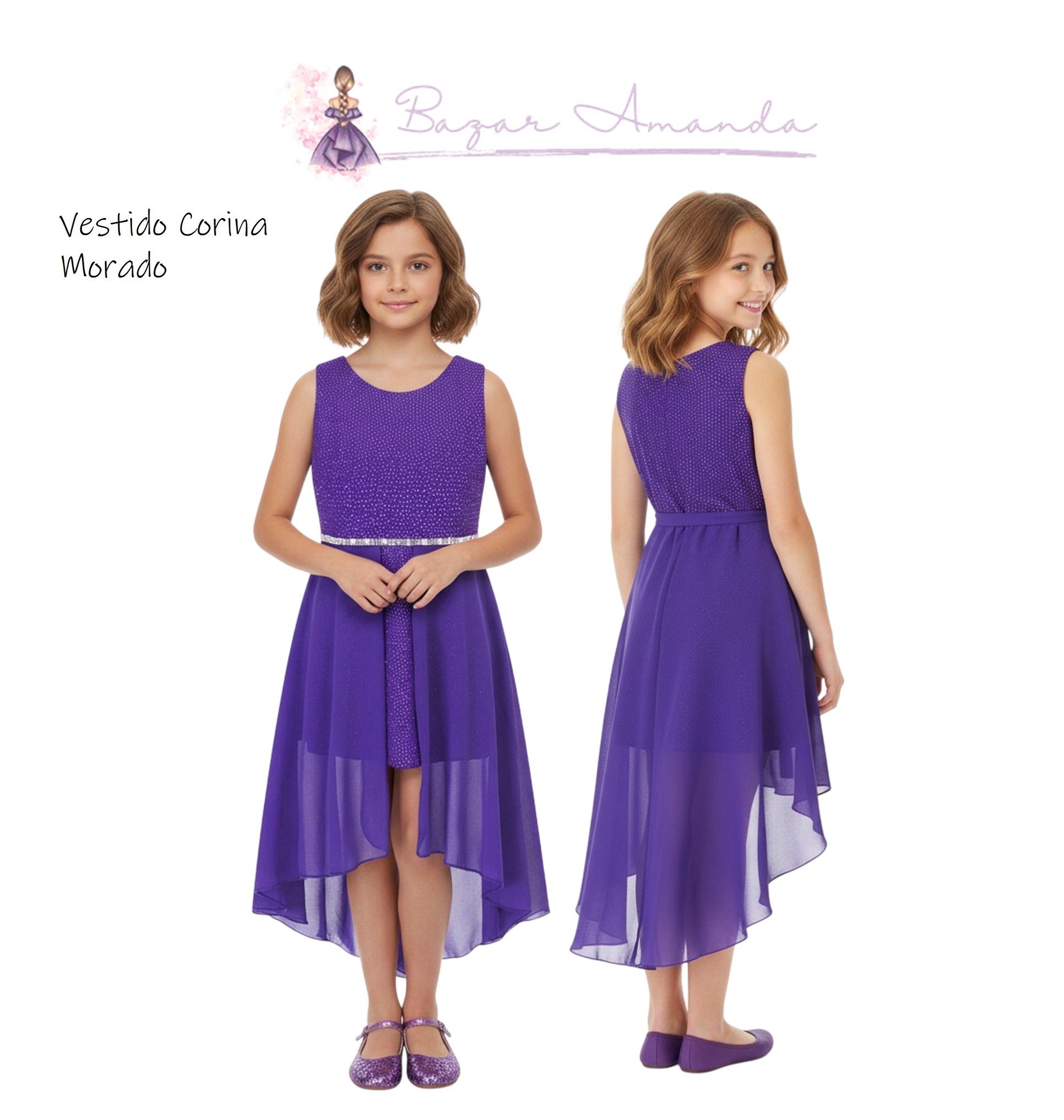 • El largo delantero del vestido es bajo la rodilla