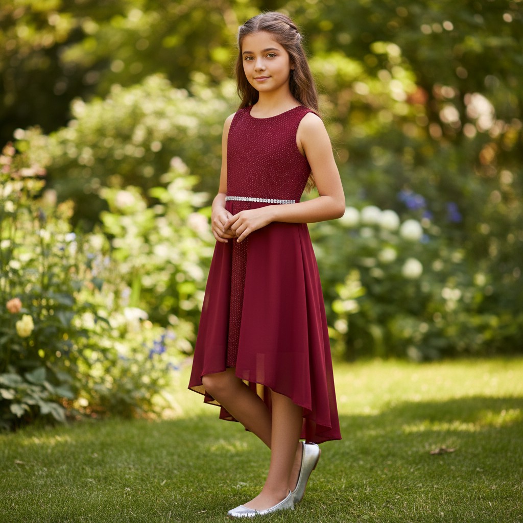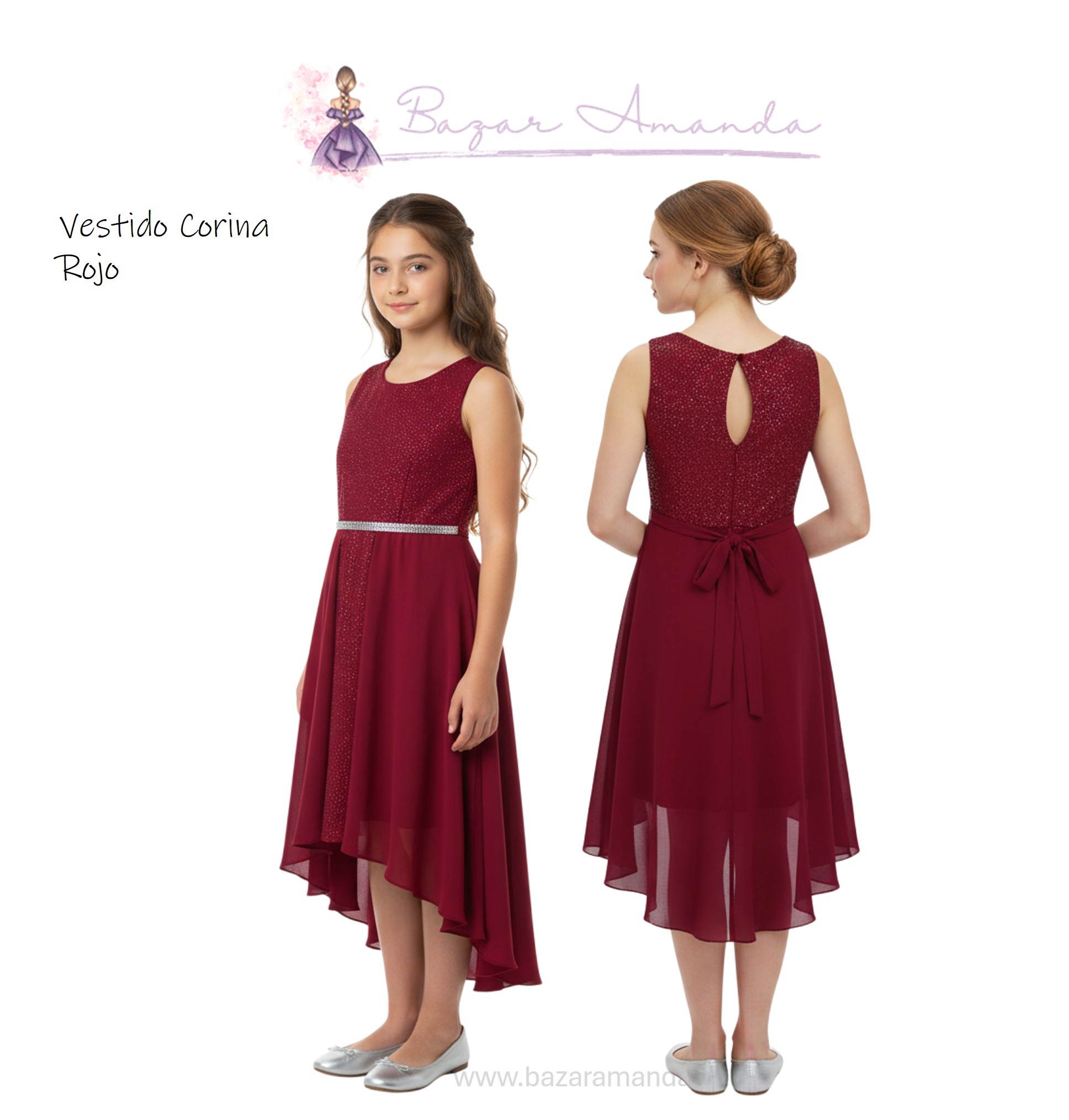 - El largo delantero del vestido es bajo la rodilla