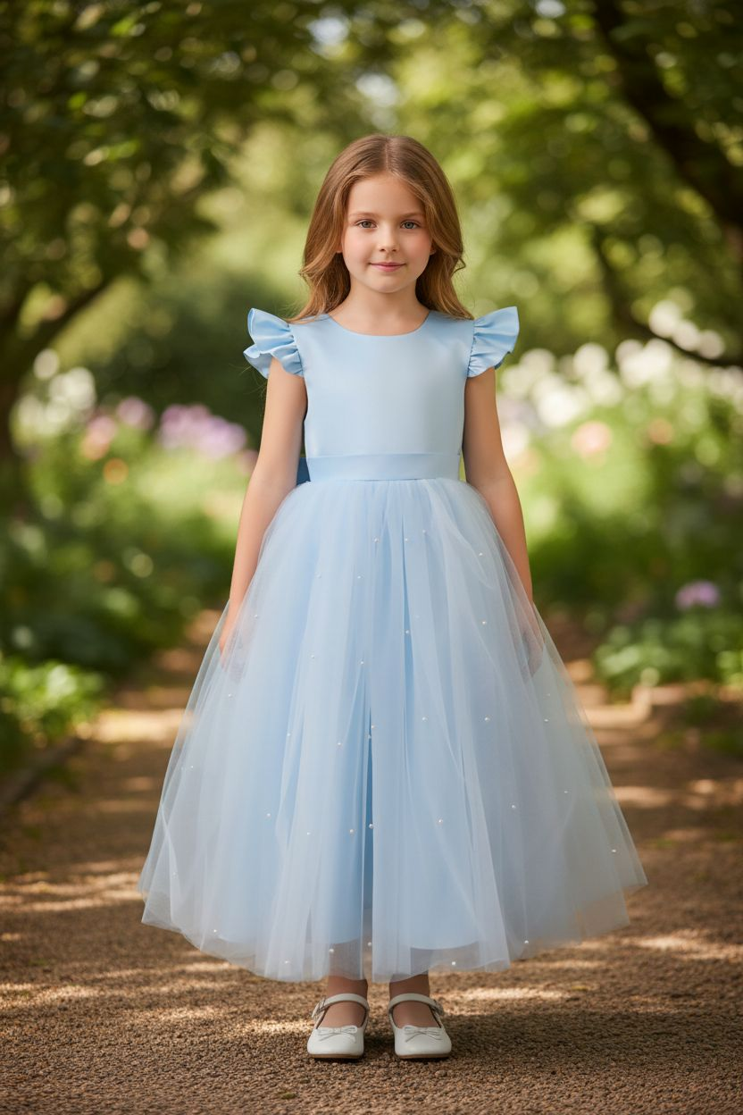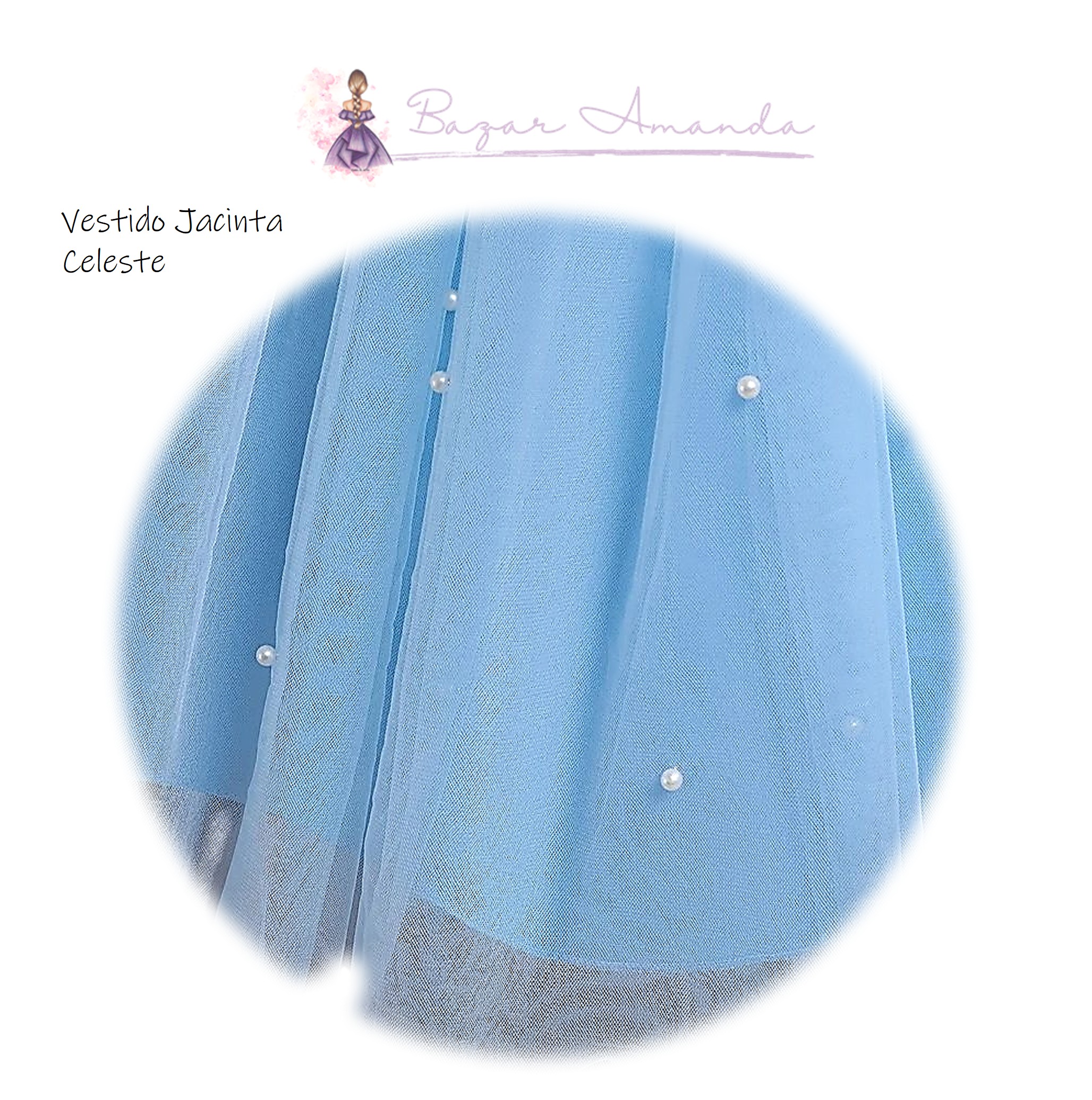 - Faldón en tul con delicadas aplicaciones de bisutería